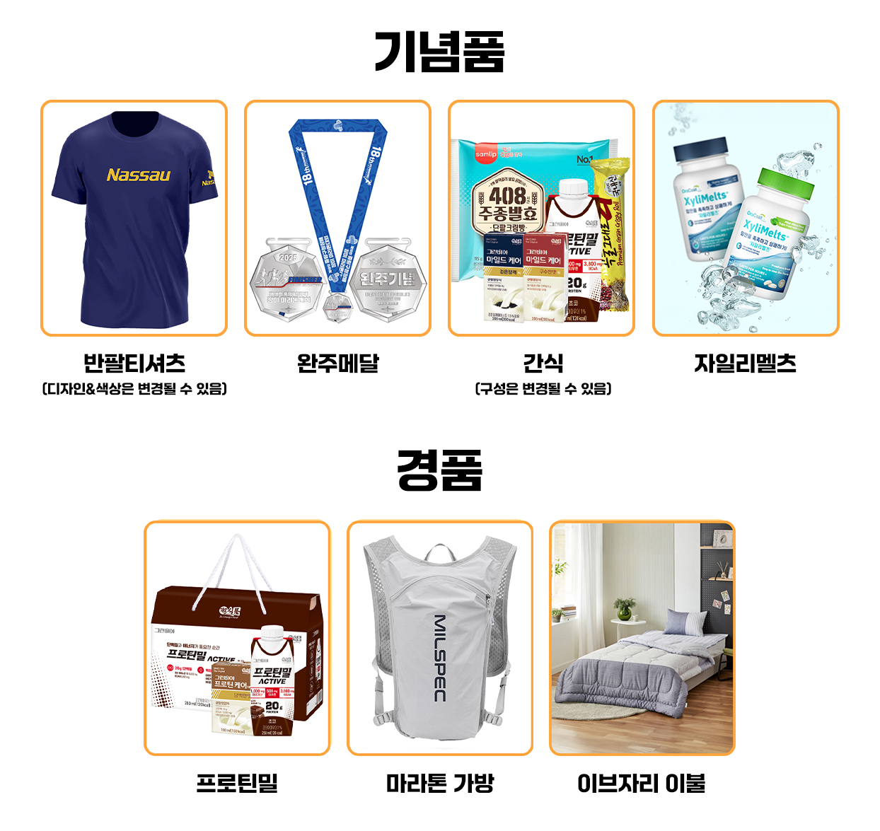 [ 기념티셔츠, 완주메달, 기록증, 간식(빵,음료수) ]